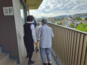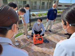 10月24日(金)、夜勤時間帯に出火した想定で消防訓練を行いました。サイレンが鳴り響く中、スタッフ一人ひとりが役割を確認しながら迅速に行動。緊張感のある中にも、ご入居者を守る意識がしっかりと伝わる訓練となりました。訓練後は、3階庭園にてポータブル電源の作動訓練も実施。実際に電源を稼働させながら、停電時にも慌てず対応できるよう確認を行いました。スタッフからは「夜間想定の訓練はとても勉強になった」「非常電源の操作を実際に体験できて安心した」といった声が聞かれました。これからも、万一の災害時にも落ち着いて行動できるよう、日々の備えを大切にしてまいります。