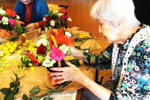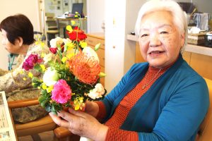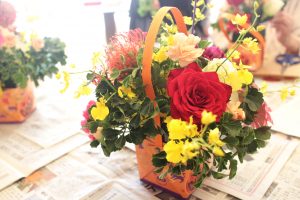 秋の彩りがいっそう深まる季節となりました。日ごとに木々の色づきが増し、秋の訪れを感じる今日この頃です。10月のお花サークルでは、ピンクッションやパープルのカーネーション、赤いバラ、トルコキキョウなどを使って、秋色のアレンジメントを楽しんでいただきました。オレンジや紫の花々はハロウィンを連想させます。そして、お花を生ける器も可愛らしいハロウィン仕様🎃雰囲気を一層引き立てていました。「ピンクッションの形が珍しいね。部屋に飾るのが楽しみ。」「私はバラを真ん中にしてみようかな。」など、笑顔で談笑されながらも、時折真剣な表情を見せる瞬間もあり、皆さま思い思いの作品づくりを進めていらっしゃいました。秋の深まりとハロウィンの華やかさを感じながら、心豊かで穏やかなひとときとなりました。